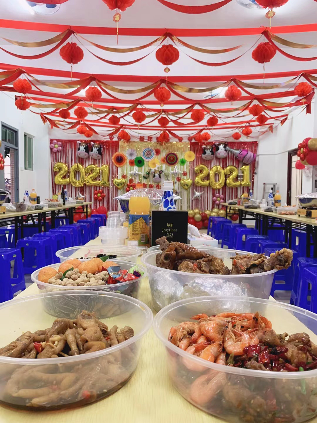 由于疫情不適合大型聚會,雅香麗在公司食堂舉辦了元旦晚會,2020年實“鼠”不易,2021年“牛”轉(zhuǎn)錢坤!